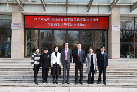 On the morning of March 25th, Consul General Hong Chunchang, Consul Cao Yinting, and Practitioner Jin Na from Consulate General of the Republic of Korea in Xi’ancame toPeihuaUniversityforanexchangevisit. Theuniversity’schairman,Jiang Bo,VicePresident Liu Yuelian,Director of the International Exchange Center Wang Peng,ExecutiveVicePresident of the School of Media and Design Xu Ying, and Korean professor Choi Sungbo accompanied the visit andparticipated in thediscussion.