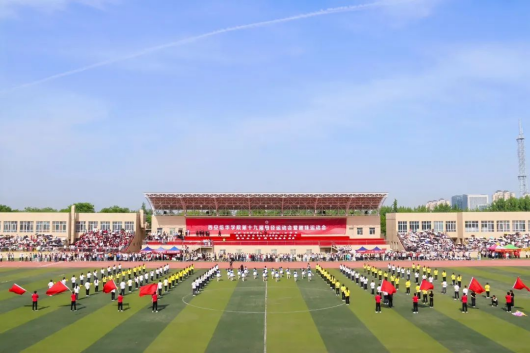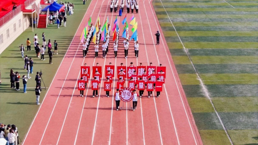 The national flag guard team, referees, athletes, and teaching staff groups entered the field one by one. Facing the radiance of the sunrise, the students with high fighting spirit were full of pride, stepping on the morning dew, and the teachers were energetic-looking as well. They shouted and sang, rode the wind and waves, and ran towards victory.