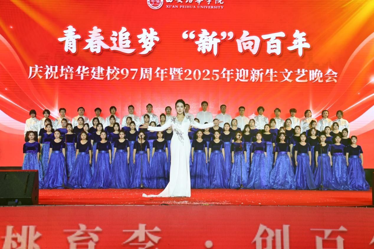 The river of time ripples with youthful energy, and the vast starry sea illuminates the voyage of new dreams. On the evening of October 23, Xi’an Peihua University Held Its 97th Anniversary Celebration and 2025 Freshmen Welcome Gala was held at the Wukesong Stadium. The event was attended by Chairman Jiang Bo, Party Secretary Liu Feng, Vice President Yao Wenjing, International Principal Li Hua, and representatives of teachers and students from all secondary schools. The gala was hosted by Ju Meng, a faculty member of the Broadcasting and Hosting Arts program; Chen Xiaoxiong, a faculty member of the Internet and New Media program; and Broadcasting and Hosting Arts students Fu Yujie and Wang Zifan..