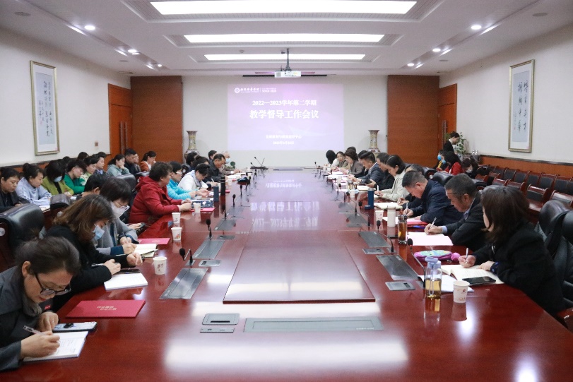 2023年4月25日,学校召开2022-2023学年第二学期教学督导工作会议,常务副校长胡俊生、发展规划与质量建设中心主任赵巍、教务管理中心主任助理孟倩以及全体校院两级督导专家参加了会议,会议由发展规划与质量建设中心主任助理全婧主持。