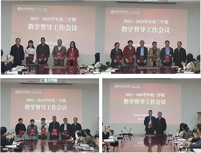 会议由赵主任宣读了《西安培华学院关于表彰2022年度优秀教学督导的通报》,胡校长为优秀教学督导颁发荣誉证书,同时为本年度新聘校级督导专家齐仲里教授颁发聘书。