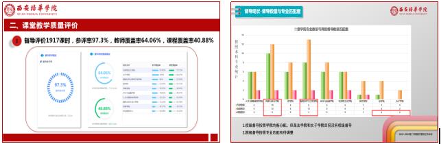 全助理用详实的数据对上学期学校教学督导队伍建设、课堂教学质量评价、专项督查、日常教学巡查等工作进行了全面分析解读。教育教学督导办公室主任王西娅从督导职责出发对本学期督导工作进行了梳理,同时基于督导工作的现状对督导选聘、院级督导工作开展、督导自身素养提出相关建议。