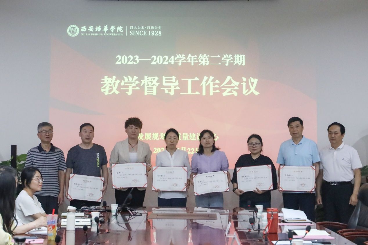 校领导为“2023年度优秀教学督导”颁发了荣誉证书,表彰他们在教学督导工作中的杰出贡献。