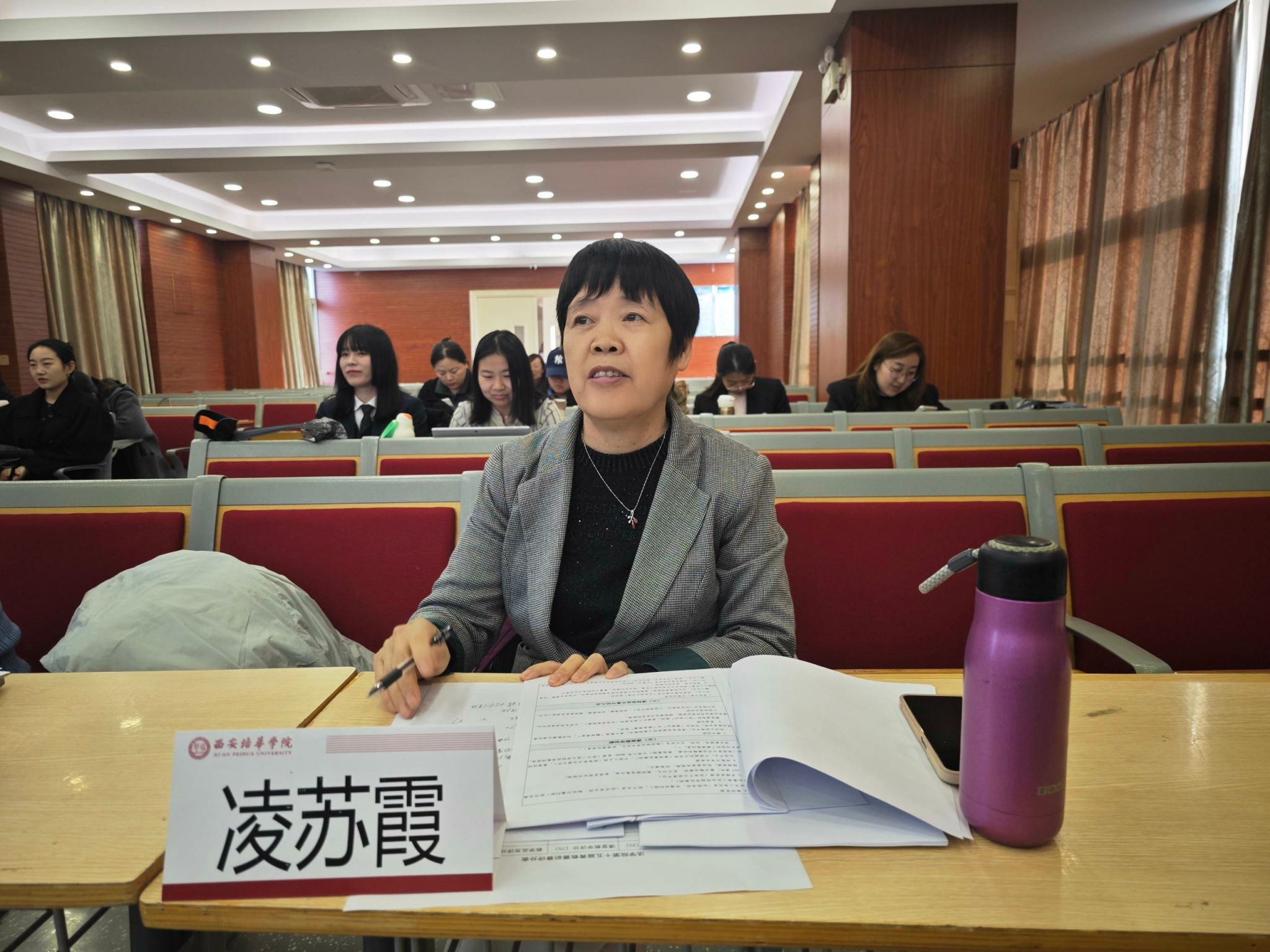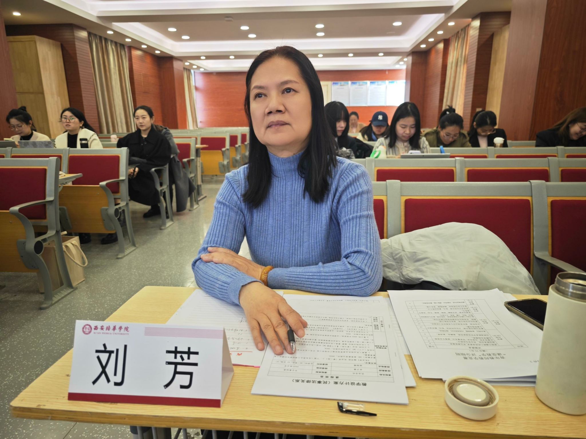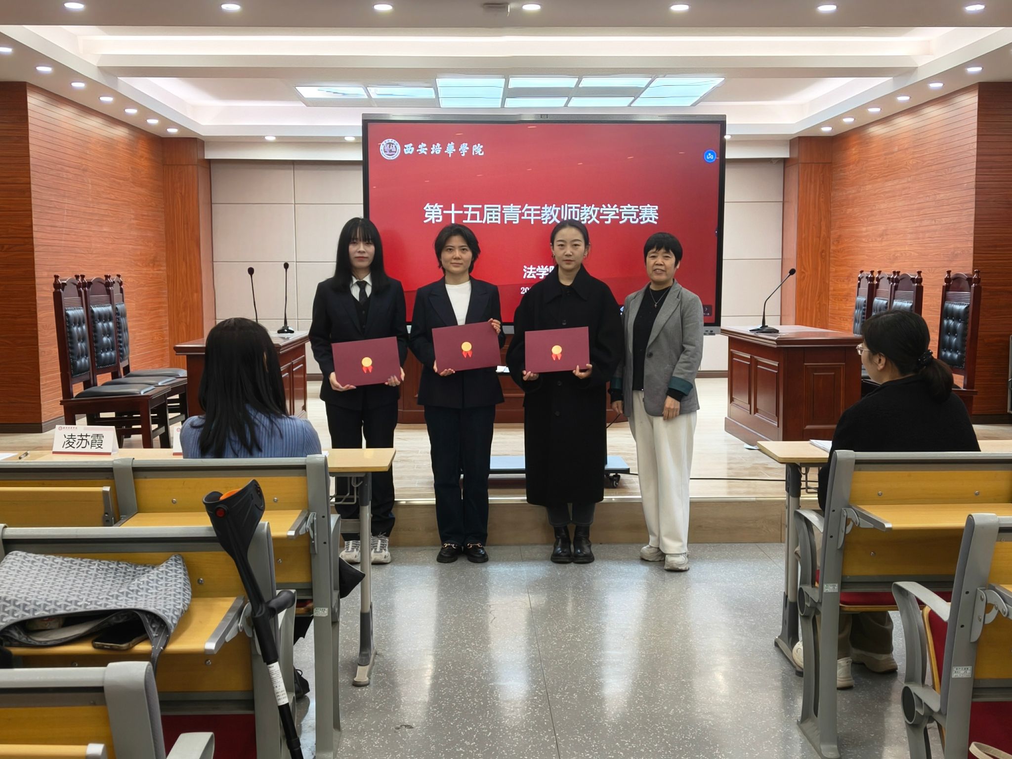 本次比赛特邀法学院公法教研室刘芳教授(硕士研究生导师、宁夏法学会经济法学研究会会长、宁夏国家公务员考试面试考官);智能科学与工程学院电子信息工程专业胡亚维副教授(第五届陕西高校青年教师教学竞赛工科组一等奖获奖教师);法学院私法教研室凌苏霞副教授(法学院教学督导组专家)担任评委,从多学科视角、多维度标准为参赛教师精准点评、传经送宝。