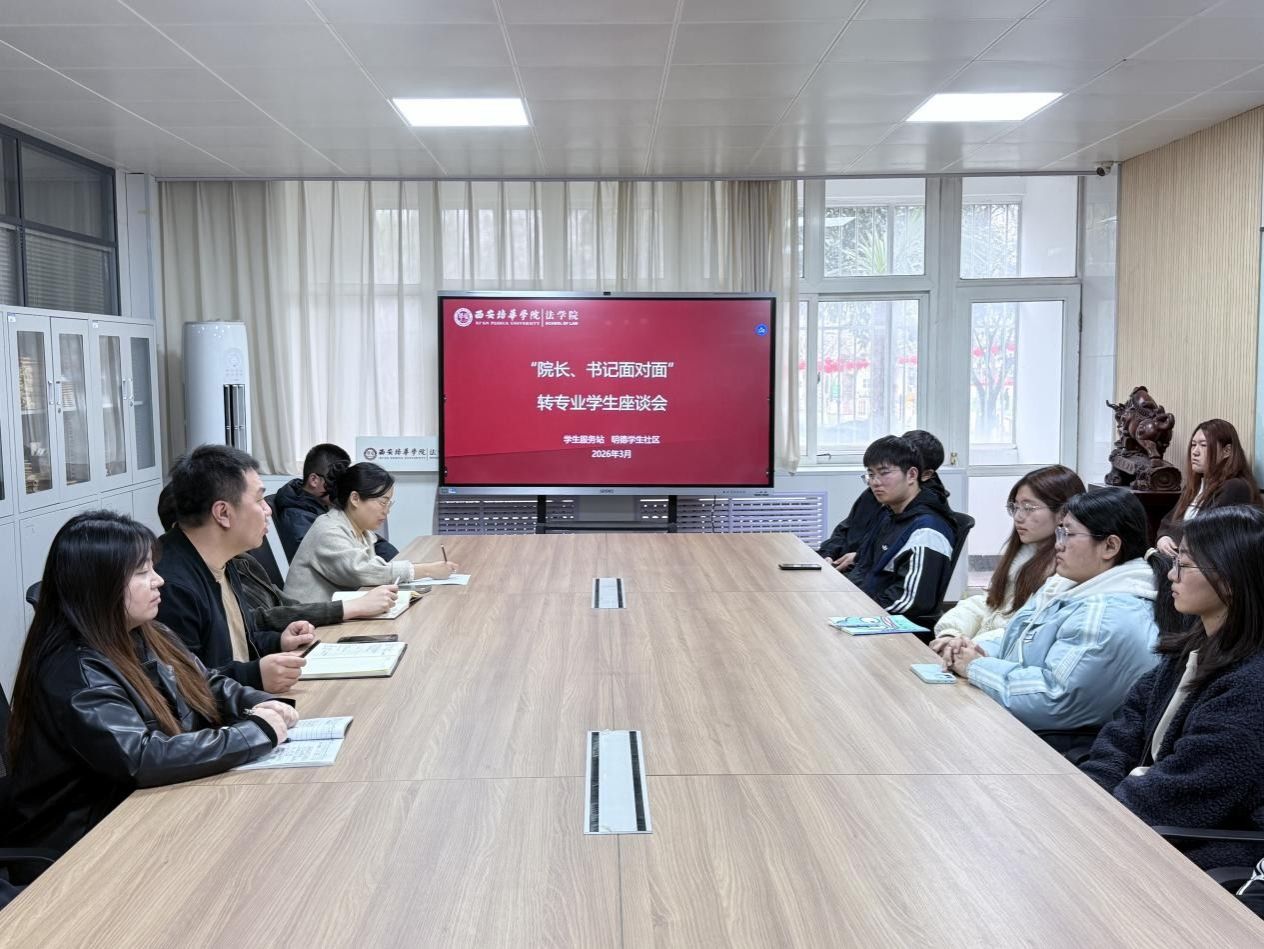 为深入了解学生思想动态,精准把握学生成长需求,更好的适应新环境、新专业,进一步优化学风建设、完善育人体系,3月23日16:00,法学院于格物楼1118召开“院长、书记面对面”转专业学生交流座谈会。本次座谈会由法学院学生干事杨婷婷主持,党委书记兼行政副院长韩斌、辅导员代表及本学期新转入我院学生参加。