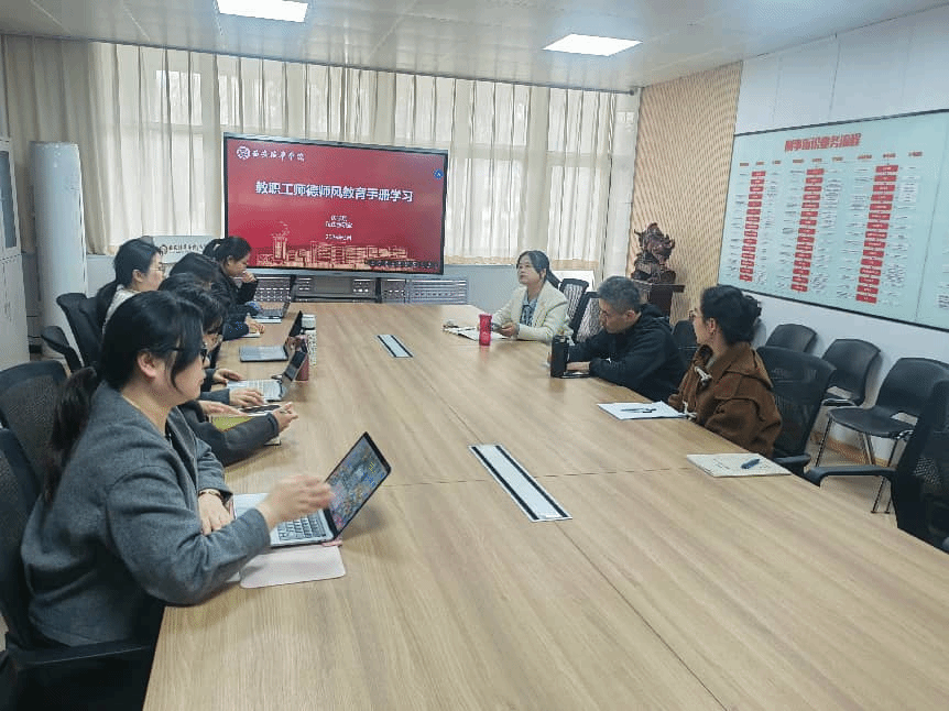 为加强师德师风建设,提升教师思想政治素养与职业道德水平,私法教研室于2026年3月25日在格物楼1116会议室召开《西安培华学院教职工师德师风教育手册》专题学习研讨会。会议由私法教研室主任张海珠副教授主持,全体教师参会。