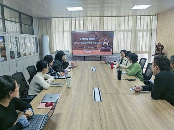 为探索法学教学方法创新路径,提升青年教师对规范与案例融合教学的理解与应用能力,2026年4月1日下午,法学院私法教研室举办了《法条与案例的融合:知识产权法注释教学实效性研讨》专题讲座。讲座由私法教研室主任张海珠老师主持,王兰萍教授主讲,教研室全体青年教师参加。