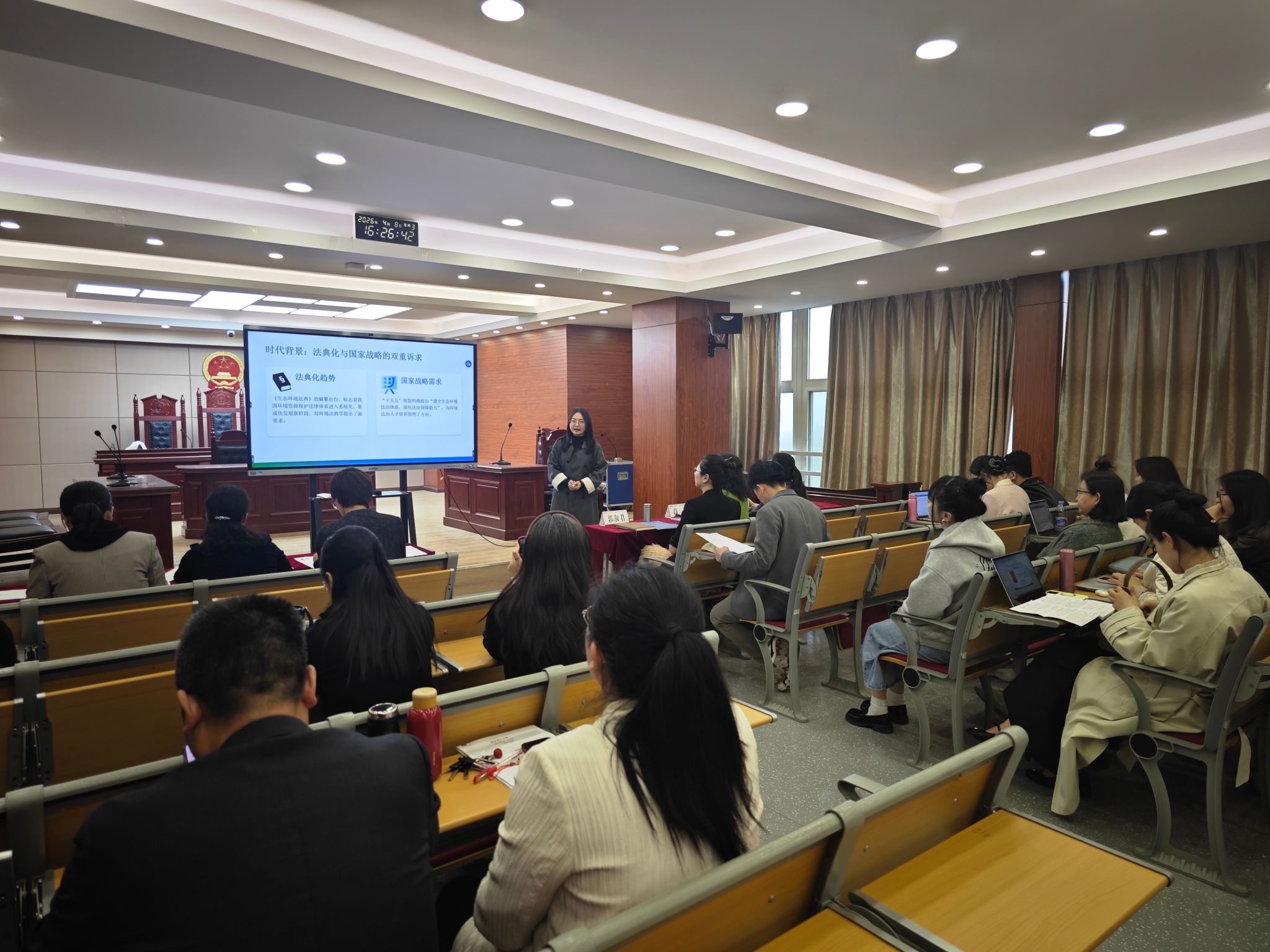 法学院院长助理郭淑君作总结讲话,对评委专家的专业评审与悉心指导表示感谢,对参赛教师的精心准备与精彩展示给予高度评价。她表示,学院将以此次大赛为契机,持续深化教学改革,推动教学创新成果转化,着力培育德法兼修的高素质法治人才。