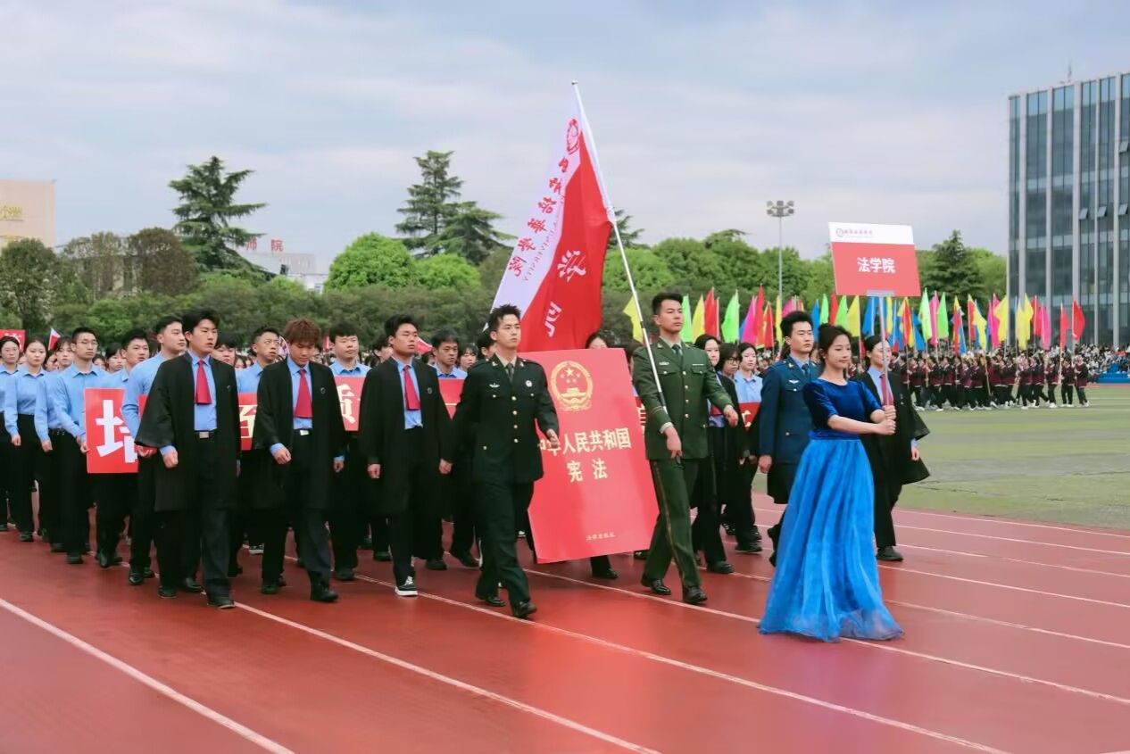 紧随其后的是法学院教师方阵,意气风发、步履从容,以昂扬向上、精神焕发的姿态稳步前行。平日里,他们深耕讲台、潜心治学,以扎实的专业学识传道授业,用暖心的关怀陪伴学生成长,做学生法学道路上的引路人与守护者;此刻,他们身姿挺拔、神采奕奕,尽显为人师表的端庄与儒雅,更传递出法学院师生同心同德、携手共进的深厚情谊,诠释了学院亦师亦友、教学相长的良好育人氛围。