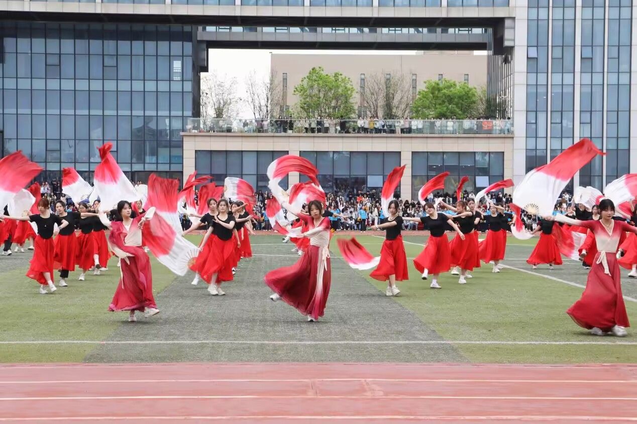随后,各学院文艺表演轮番登场。翩跹扇影,律动青春。法学院学子手执彩扇,以灵动舞姿燃动全场,将少年意气与蓬勃朝气融于翩然舞动之中,化作赛场一抹亮眼景致。扇起扇落间,风姿绰约,活力尽显,尽显古典韵味与青春活力。