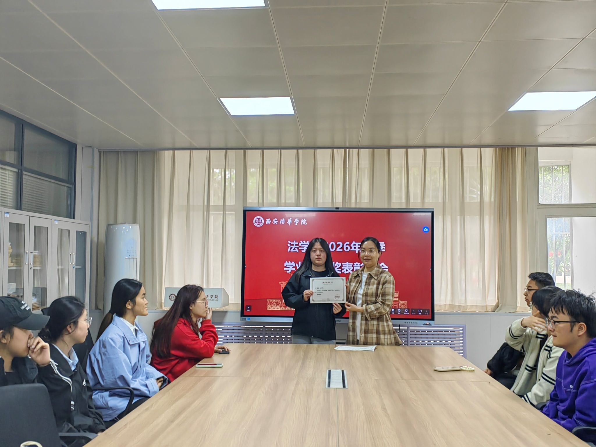 会上,杨婷婷老师向全体获奖同学表示热烈祝贺,勉励大家珍惜荣誉、再接再厉,切实发挥榜样引领作用。随后,杨婷婷老师与关鑫老师共同为获奖学生代表颁发荣誉证书及奖品。