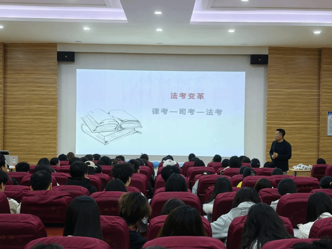 讲座伊始,左宁老师围绕法律职业资格考试的发展变革展开阐述,系统梳理了法律职业资格考试的演进历程,深入分析了考试改革对法律人才核心能力提出的导向要求。他引导同学们跳出单纯的知识点记忆误区,树立以程序理念为核心的系统化学习思维,帮助大家理清学习思路、明确备考方向,为后续专业学习与职业规划筑牢认知基础。