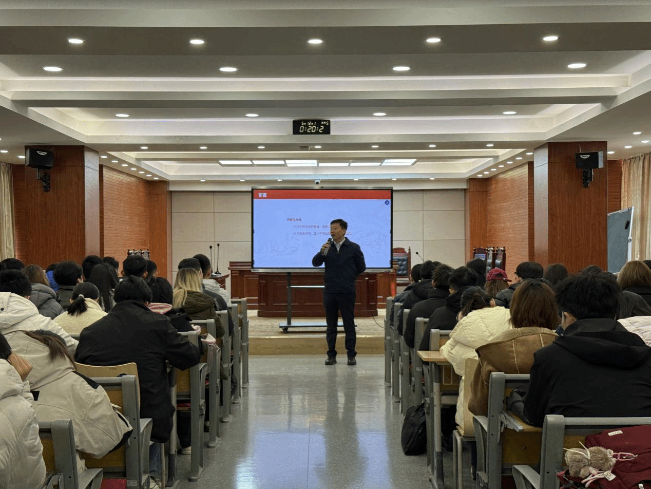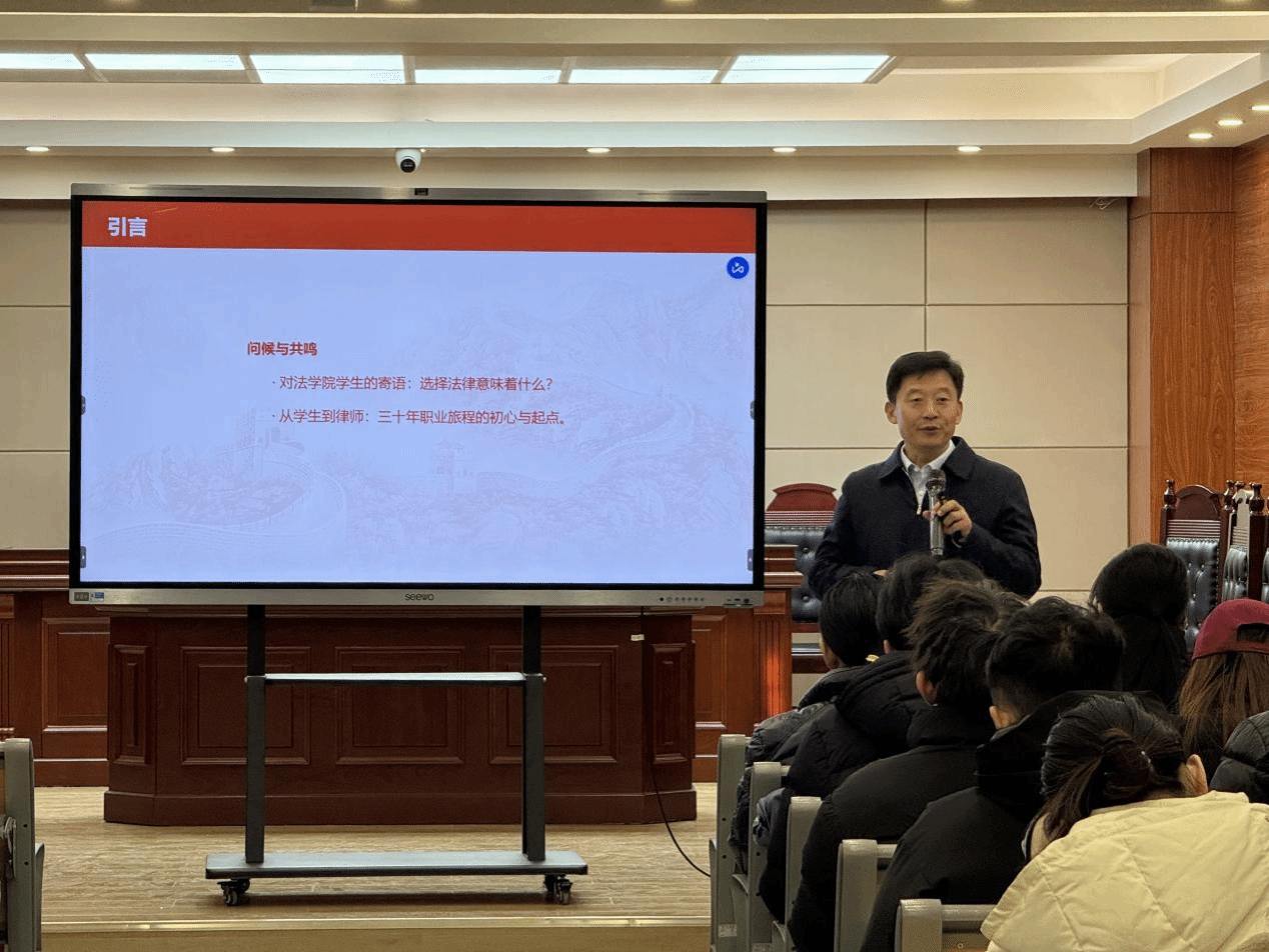 为深入贯彻落实国家关于高校毕业生就业工作的决策部署,推动我院学生树立正确的职业规划意识,提升就业竞争力,12月19日上午10点,法学院在格物楼1609-B教室举办以“浅谈法律人的责任与担当”为主题的职业规划专题讲座。本次讲座特邀陕西省律师协会副会长、北京市安理(西安)律师事务所党支部书记、主任屈金冈主讲,2025级法学专升本200余名学生参与。