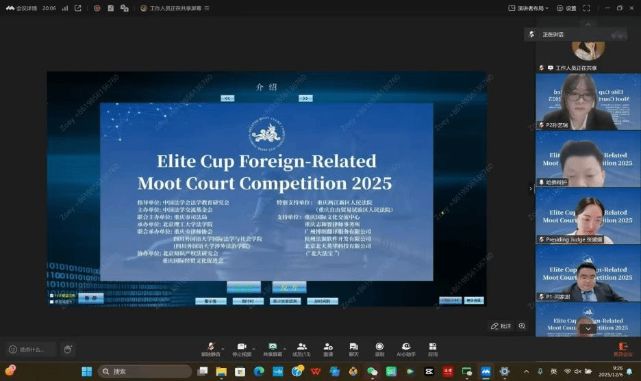 “领军杯”涉外模拟法庭辩论赛是我国具有重要影响力的全英文法律竞赛之一,旨在提升法学学子的国际视野、逻辑思维与涉外法律实务能力。本届赛事吸引了中国政法大学、西南政法大学、四川大学等全国多所知名高校代表队参与,竞争激烈。