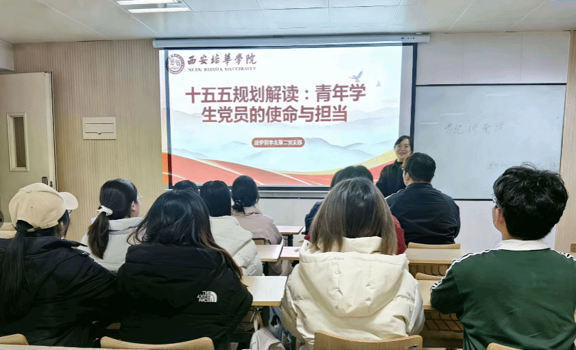为深入学习贯彻国家“十五五”规划纲要精神,引导青年学生党员准确把握时代使命、强化责任担当,12月11日西安培华学院法学院学生第二党支部开展“深入学习贯彻‘十五五’规划纲要精神 践行青年学生党员使命担当”专题党课,第53期入党积极分子参加学习。党支部书记关鑫系统讲解了“十五五”规划的制定背景、战略定位与核心内容,重点解读其在教育强国、法治中国、民生保障和科技创新等领域的部署,并强调规划不仅是国家未来发展的蓝图,更是青年成长成才的重要指引。她结合高校立德树人根本任务,引导学生将个人发展融入国家发展大局。