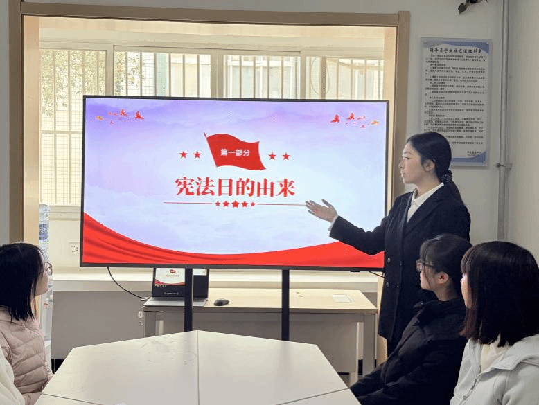 宣讲围绕宪法日的设立背景与意义、宪法的根本法地位与作用等方面展开,通过理论解读、案例分享与互动讨论相结合的方式,阐述了宪法作为治国安邦总章程和公民权利保障书的重要意义。本次宣讲引导同学们将宪法知识与实际生活相结合,深刻认识宪法在国家治理中的核心作用,为培育青年法治观念、弘扬宪法精神奠定了良好基础。