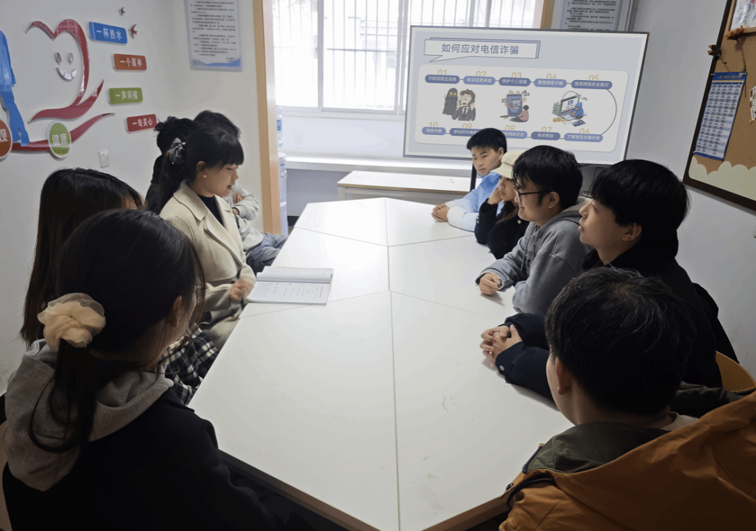 为增强学生防范电信诈骗的意识和能力,推进“一站式”学生社区建设,2025年11月20日下午,法学院明德社区在3号学生公寓楼明德社区活动室成功开展“警惕电信诈骗,守护青春财富”主题反诈小课堂。活动由公法教研室陆凌秀老师主讲。