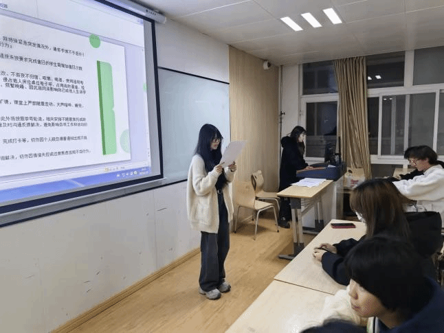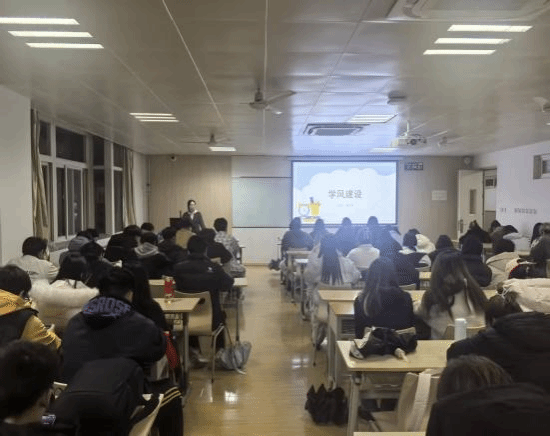 班会上,各位辅导员从“明评估之重,树‘主人翁’意识”“立鸿鹄之志,燃‘想学习’热情”“守课堂之本,展‘会学习’风采”“践笃行之力,强‘能学习’本领”“扬诚信之气,守‘真学习’底线”“聚集体之力,筑‘共学习’生态”等六个方面,向全体同学发出了全面而具体的行动号召。辅导员带领同学们逐条学习了倡议内容,并就课堂纪律、学术诚信、实践创新等关键要点进行了重点阐述和强调。