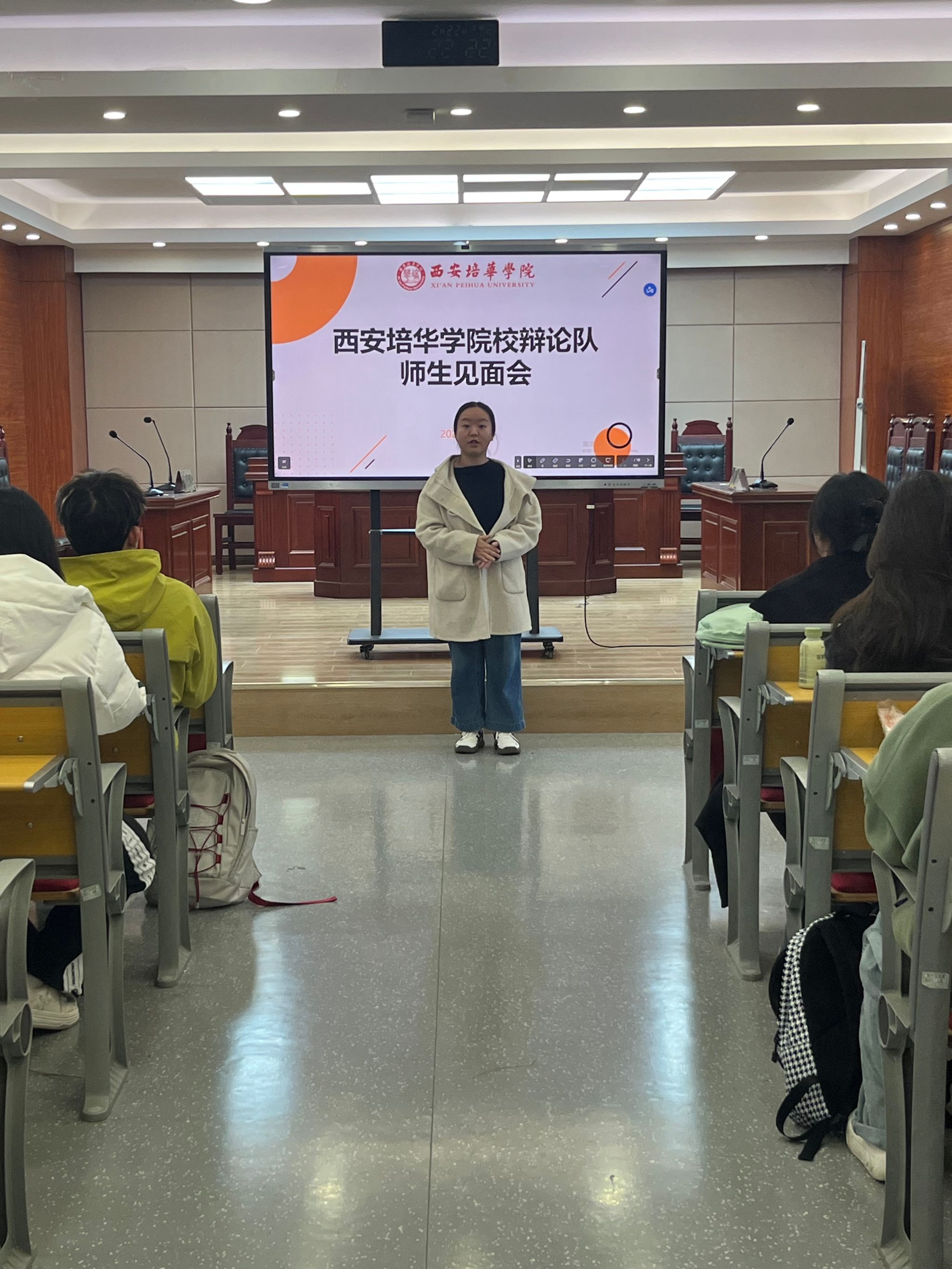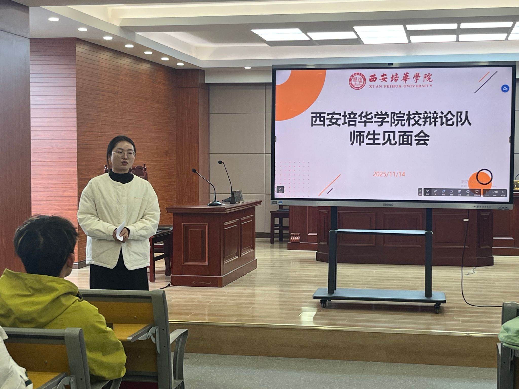 2025年11月14日中午,西安培华学院校辩论队师生见面会在格物楼模拟法庭召开。赵旭东教授、周滢滢及陈若梦三位指导老师及校辩论队全体成员参加。本次见面会旨在为新生们搭建起与专业导师深度交流、明晰辩论发展方向的重要平台。
