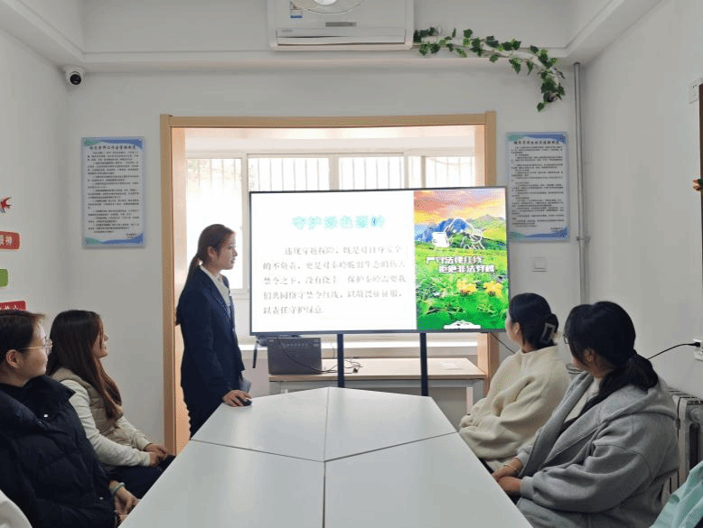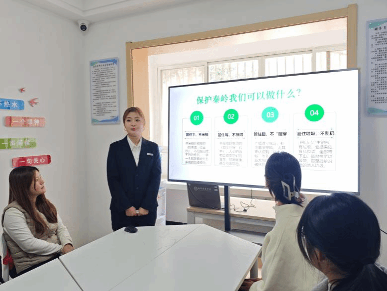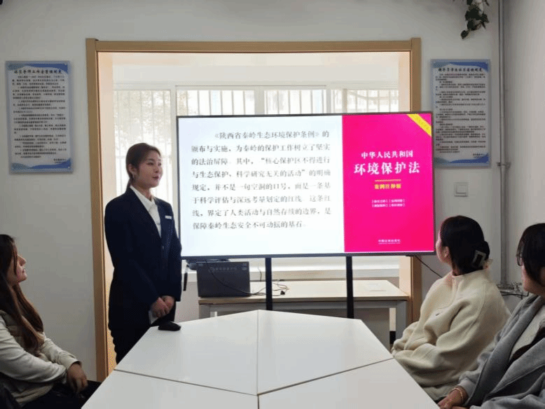 2025年11月4日中午,习近平法治思想宣讲团在明德社区3号楼开展“争当保护卫士 共建生态秦岭”主题宣讲,本次宣讲以习近平生态文明思想为指引,围绕“绿水青山就是金山银山”理念,通过《环境保护法》《中华人民共和国自然保护区条例》《陕西省秦岭生态环境保护条例》等法律法规进行讲解,明确责任义务并严惩破坏行为。