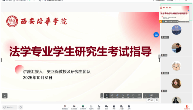 为帮助学生明晰考研计划,提升备考的针对性和时效性,掌握科学备考方法,2025年10月31日法学院法律实务教研室组织开展以“法学专业学生研究生考试指导”为主题的讲座。本次讲座由刘庚鑫老师主持,邀请法学院史正保教授主讲,其指导的部分研究生以线上线下相结合的方式担任与谈嘉宾,为学院大二至大四备考学子带来全方位、多层次的考研指导。
