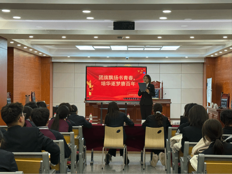 各团支部聚焦团史、校史进行讲解,从团组织号召出发,通过回溯百年前青年的无畏、诠释如今青年的担当,生动传递出法学生扎实的专业素养。各团支部通过朗诵、模拟法庭等形式充分展现了支部活力与特色。