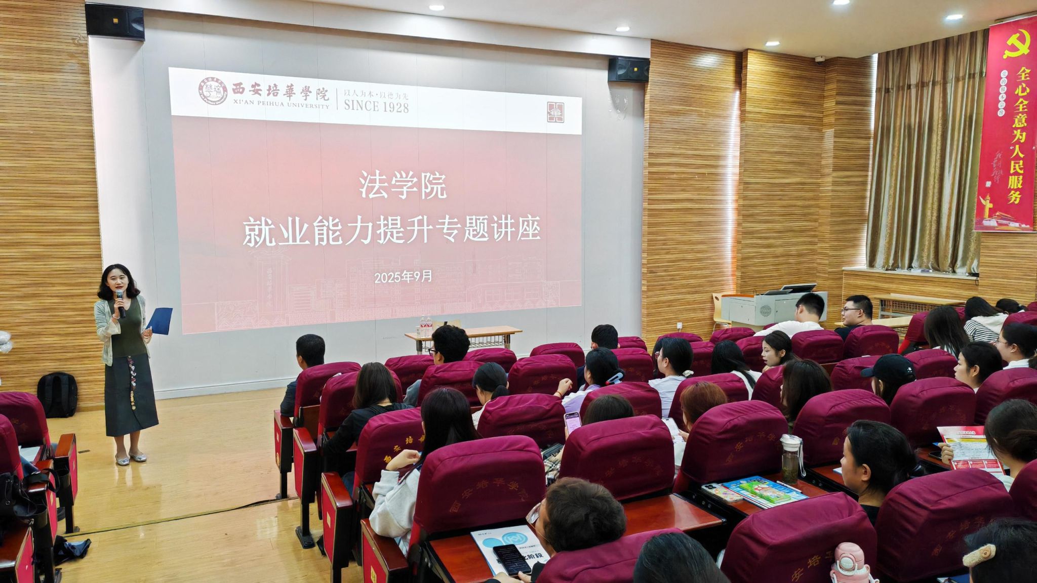 为助力我院2026届毕业生精准把握法考动向,提升备考效率和就业能力,2025年9月26日下午16:00,西安培华学院法学院邀请到西北政法大学教授、博士生导师张翔老师开展就业能力提升和法律职业资格证书备考专题讲座,共有100域名2026届和2027届学生参加。