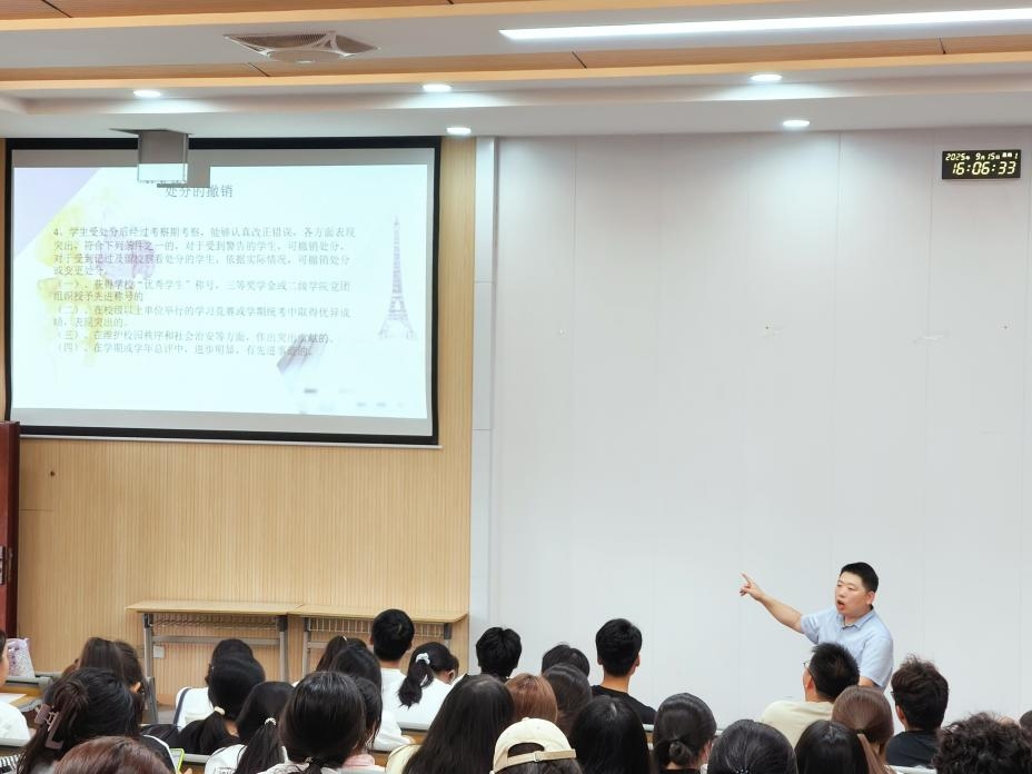 辅导员张曦以《培华学生手册》为蓝本,结合校园实际场景,为新生开展了一场全面且细致的行为规范与文明素质教育讲座。他从课堂纪律、宿舍管理、网络言行等多个维度,深入讲解大学生应具备的基本礼仪与行为准则。通过生动的案例和深入浅出的讲解,号召新生以规范言行树立良好形象,以文明素养筑牢品格根基,引导他们树立规则意识、集体意识和文明意识,尽快融入大学新环境、开启新生活。