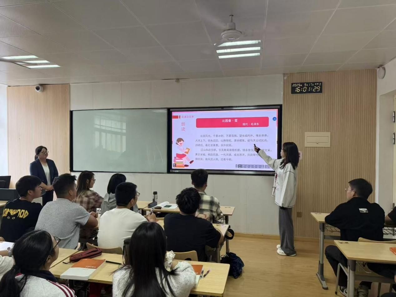 活动设置“活动简介”“学生朗诵”“教师点评”“教师辅导”四大板块。学生深情朗诵《沁园春·雪》《可爱的中国》等经典作品,教师从发音、语调等方面进行专业指导,并发出推广普通话倡议书,号召师生在课堂、日常交流中使用规范语言。活动还联动学校“推普助力乡村振兴”等项目,推动语言文字工作向纵深发展。