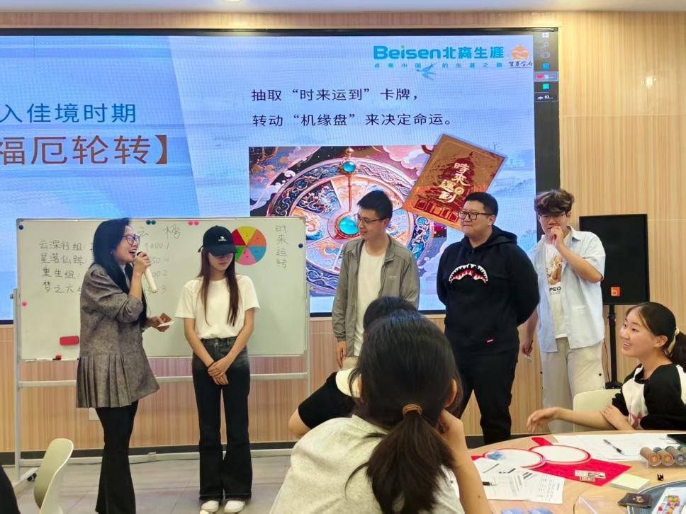 王琳琳老师向同学们详细介绍了沙盘工具的使用规则以及实操情境中同学们需要独立面对的选择与挑战。从第一学期的选课策略、社团活动、干部竞选到社会实践、证书备考、人际危机,每一个决策都牵动着未来的发展方向。