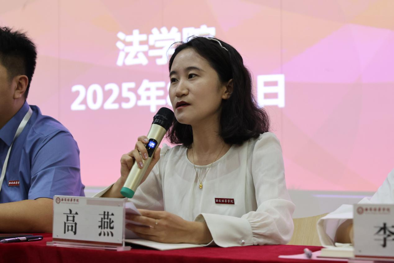 院长助理高燕则就科研能力培养与对外合作项目作了说明,包括学术竞赛、校企合作、实习基地建设以及国际交流机会等内容,培养具有创新能力和国际视野的高素质法治人才。