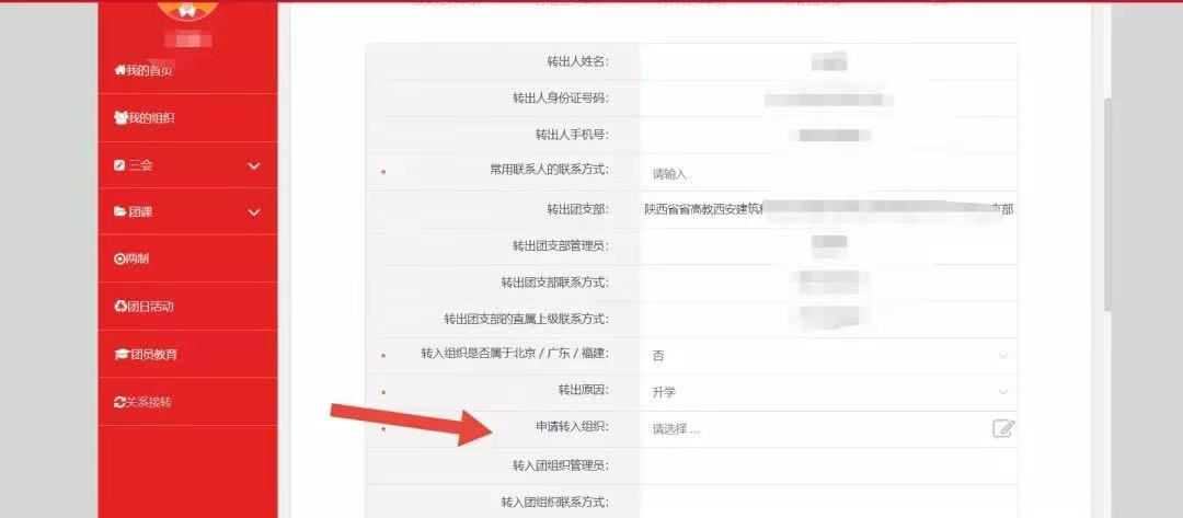 (3)申请转入组织: