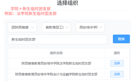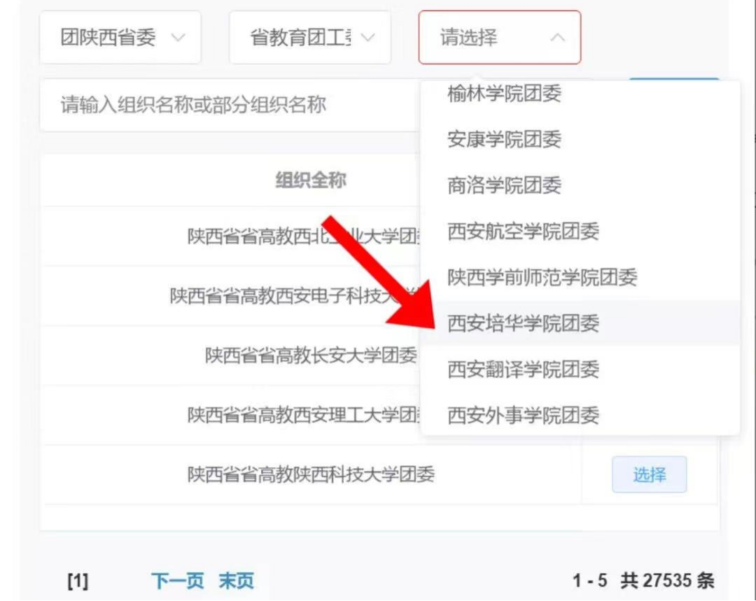 第三个框内选:西安培华学院团委