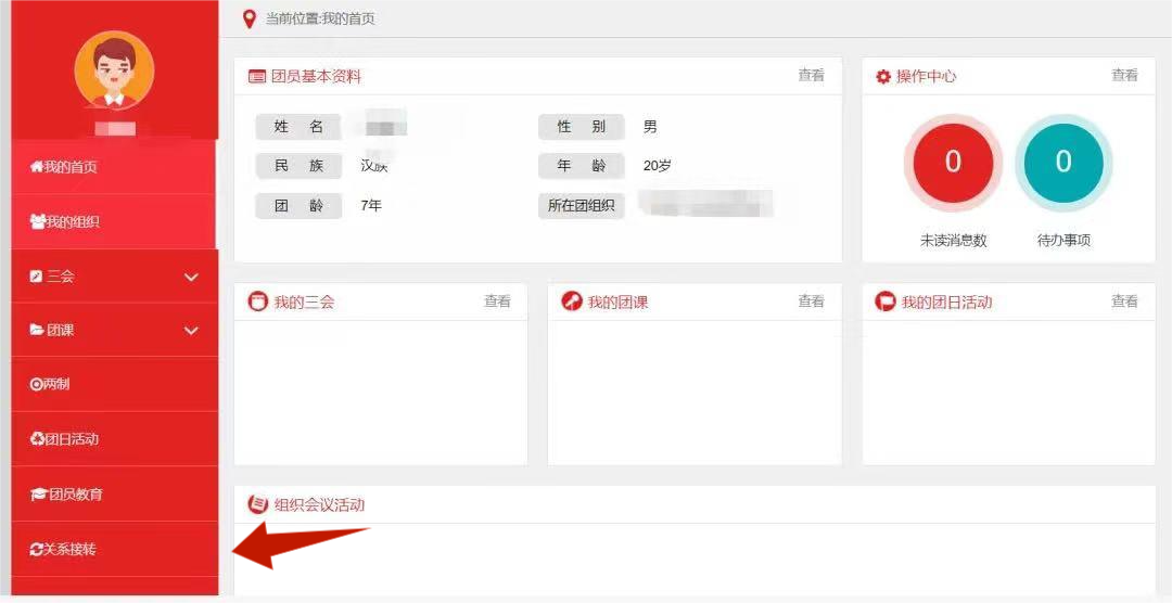 查看是否有团费还未交纳,未交清团费无法发起组织关系转接。点击“认证资料”,查看个人资料是否有需要补充完善的项目,重点查看核对手机号码、收入、职业、团员编号等内容是否需要更新。修改后请先联系当前所在团支部审核,审核通过后再发起组织关系转接。