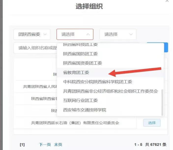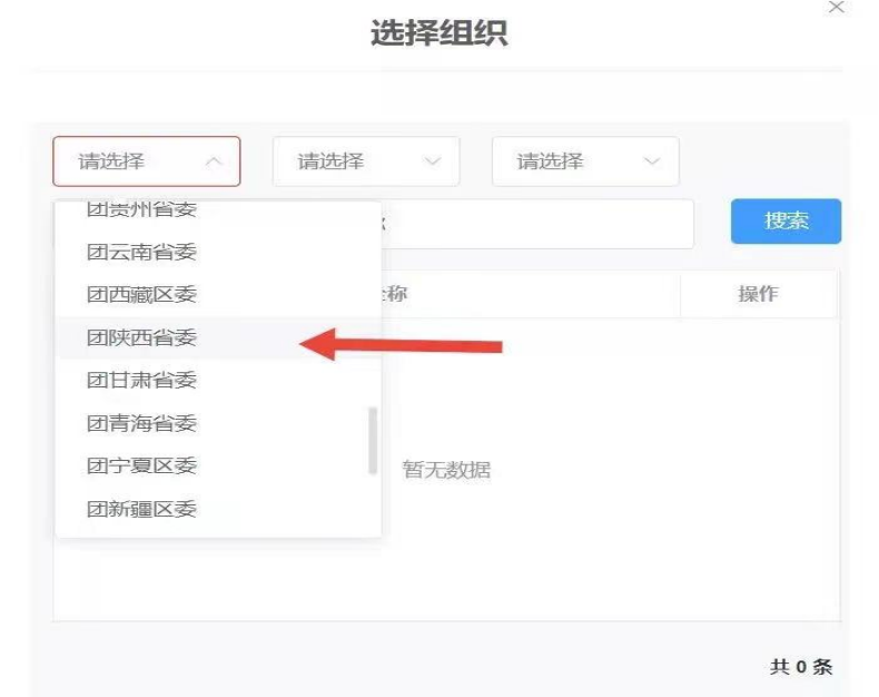 第一个框内选:团陕西省委
