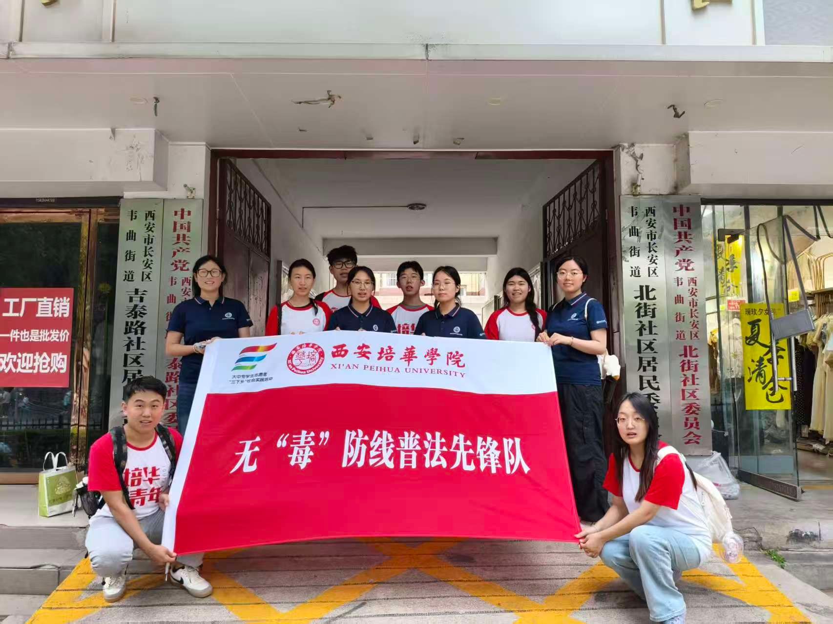 无“毒”防线普法先锋队赴西安市长安区韦曲街道北街社区服务中心开展以“清醒人生,远离毒品”为主题的暑期“三下乡”社会实践活动。团队聚焦禁毒宣传,运用专业方式,通过搭建宣传服务台,以PPT展示、视频播放及现场互动问答等形式,详细介绍毒品的种类、危害、法律后果及防范技巧,特别强调新型毒品的伪装性和隐蔽性。活动成效显著,得到法制观察、党建先锋、人民日报等多家媒体报道,增强了大家识毒、防毒、拒毒的意识与能力,提高了对毒品危害的认知水平和自我防范意识。