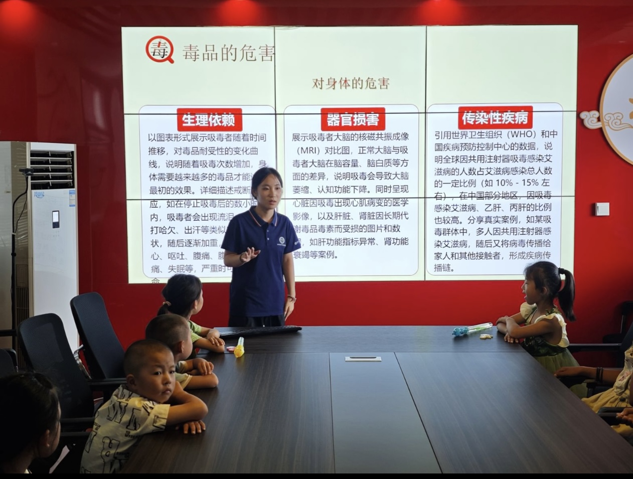实践队围绕儿童成长需求,打造"沉浸式"普法课堂和暑期安全微课堂。队员们通过民法典三句半、趣味问答等互动形式,生动讲解民事权利能力、监护制度等法律知识,特别是《未成年人保护法》中的相关内容,系好他们的第一颗“法治扣子”,助力儿童健康成长。