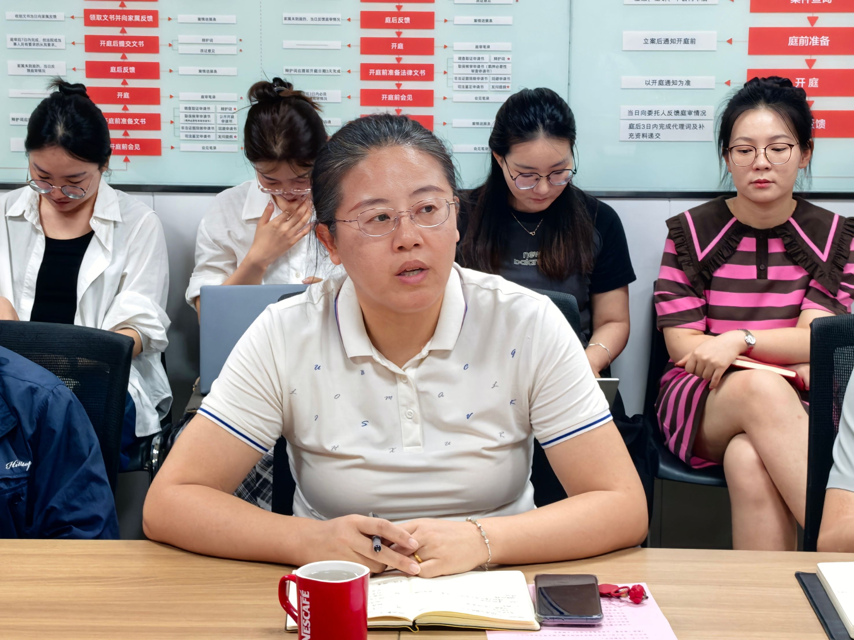 紧接着,理论法教研室主任罗静结合报告,系统讲解了学科建设的时代背景、核心任务与实践举措,深入阐释“高质量”学科建设的内涵与实施路径,为法学院申硕工作提供经验借鉴。她讲到,申硕成功的关键在于讲好培华法学院的故事,以学院特色打动评审专家。