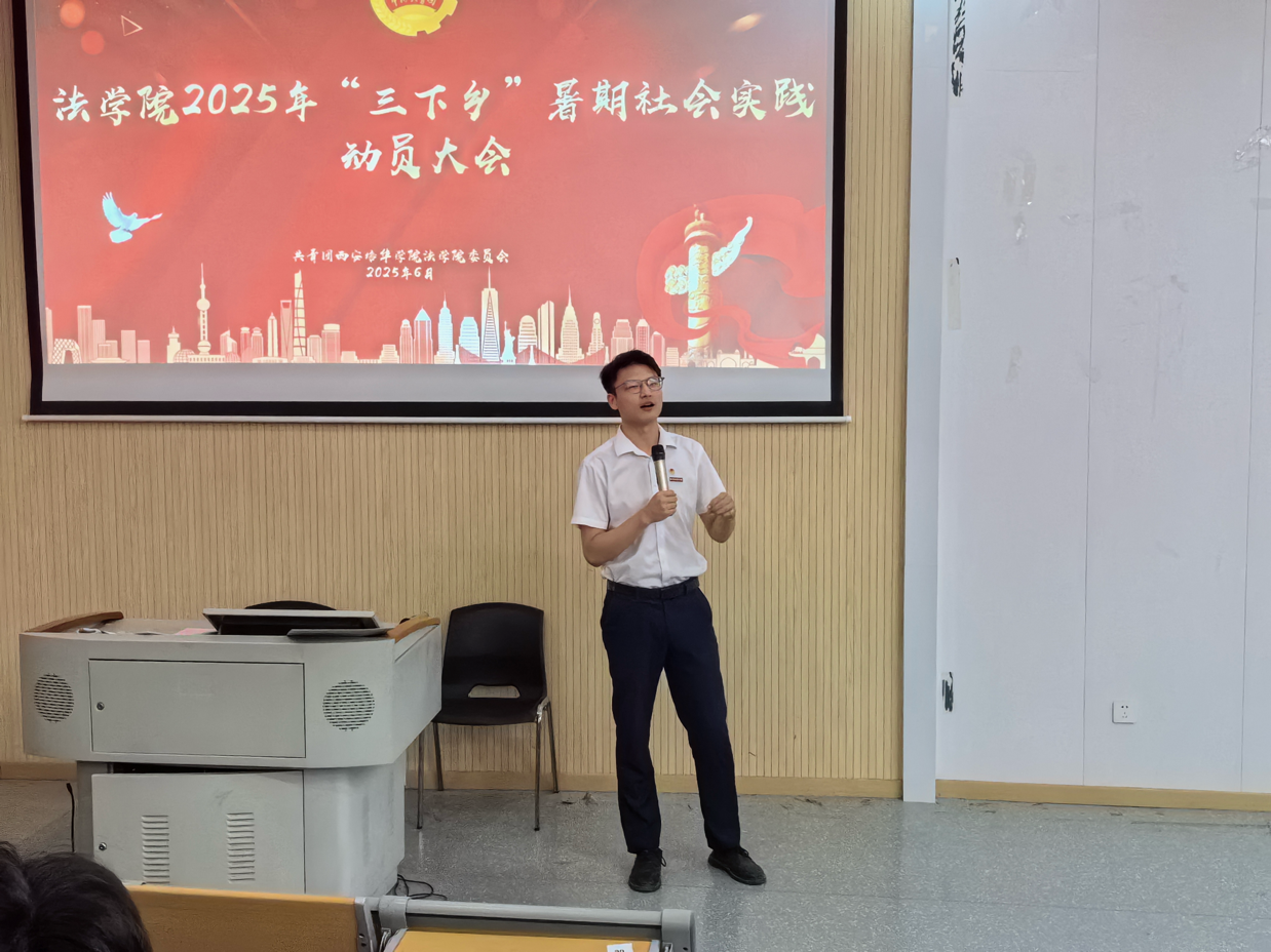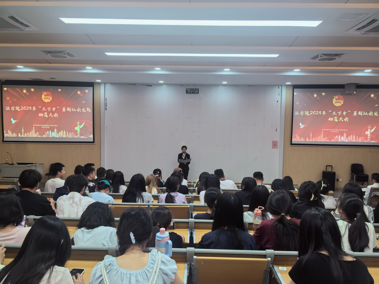 为积极响应国家乡村振兴战略,鼓励青年学生投身社会实践,2025年6月5日,西安培华学院法学院在育英楼3507教室顺利召开“三下乡”动员大会。此次大会由学生李奕璇主持,西安培华学院团委宣传部部长陈天航、法学院团委书记董可怡出席、共有200余名学生参与。