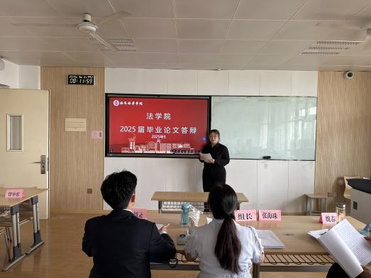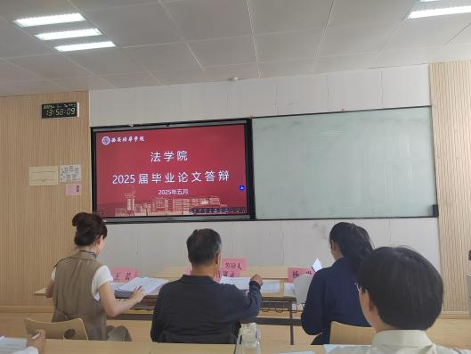 为保障本次答辩工作高效推进,学院及本届毕业论文工作组提前安排,组织答辩秘书组老师建立答辩学生联络群、布置答辩场地、准备答辩资料,确保答辩过程中消息畅通,营造舒适的答辩环境。经过四天紧张而充实的答辩,2025届本科生毕业论文答辩工作圆满完成。此次答辩不仅是对学生们四年学业成果的全面检验,也是培养其学术研究能力和创新思维的重要环节。同时,此次答辩也进一步检验了法学院的教学质量和人才培养成效,为学院今后的教学工作和学术研究提供了重要的支撑。
