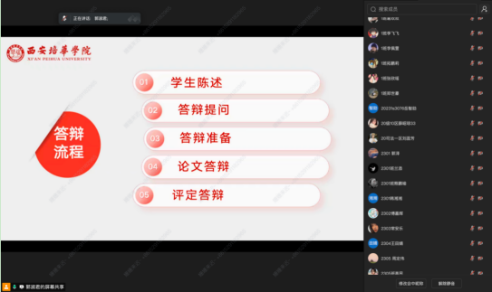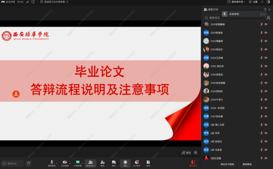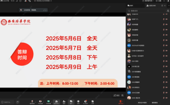 为助力2025届毕业论文答辩工作的顺利开展,西安培华学院法学院于4月30日以线上会议方式开展了一场毕业生论文答辩动员会。会议由私法教研室主任高燕老师主持,法学院赵洁副院长、郭淑君副教授、全体论文指导教师及2025届全体毕业生参加。