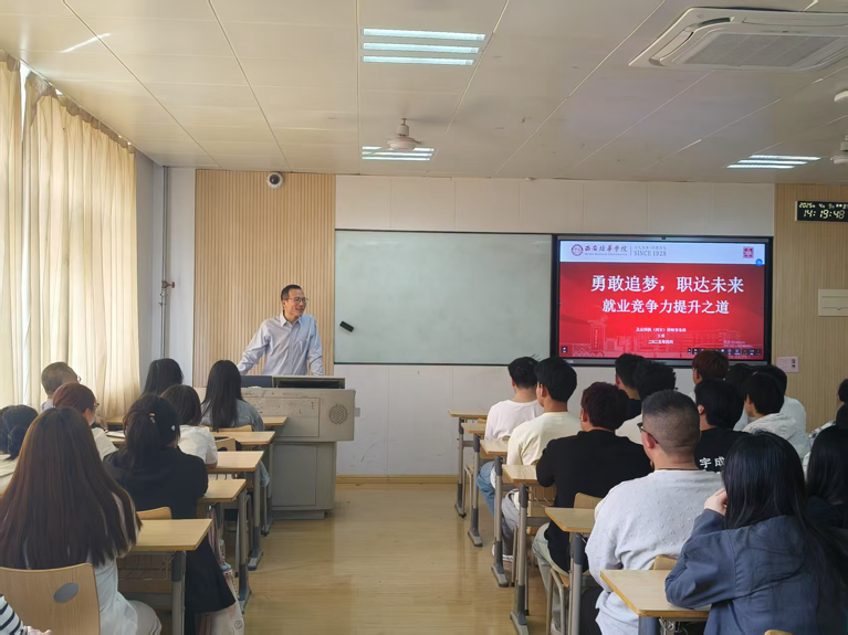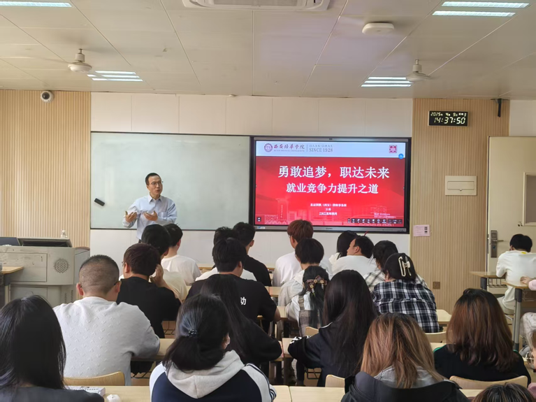 为助力学生明确职业发展方向,提升就业竞争力,2025年4月9日,法学院在格物楼1601教室举办“勇敢追梦,职达未来”就业指导讲座。本次讲座邀请了北京国枫(西安)律师事务所合伙人律师王勇作为主讲嘉宾,2024级各班学生代表参加。