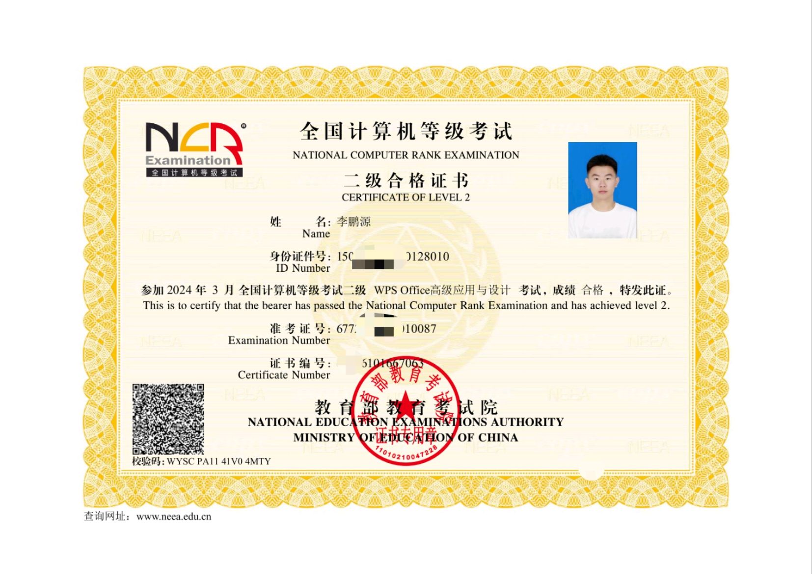 李鹏源同学始终坚信“不忘初心,方得始终”,保持着对于知识的严谨思考与深刻理解,在过去的两年大学生活中学习成绩保持年级前列并不断探索,通过全国英语四级,考取全国计算机等级二级证书、普通话二级甲等证书、C1驾驶执照等。