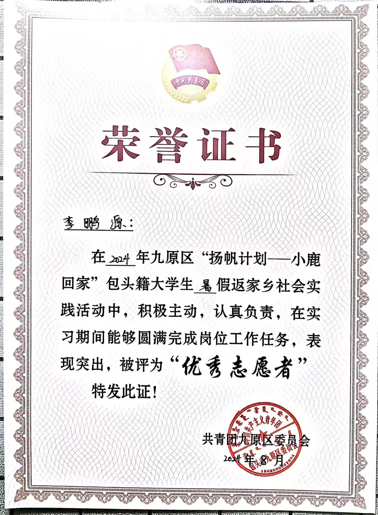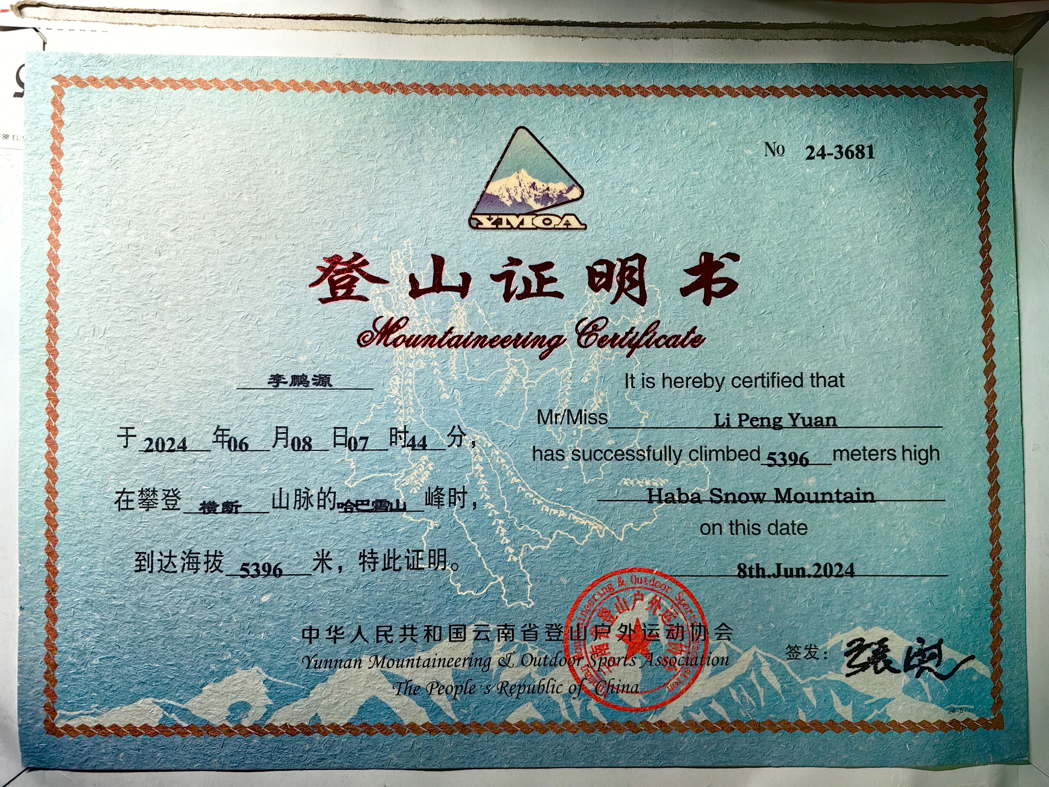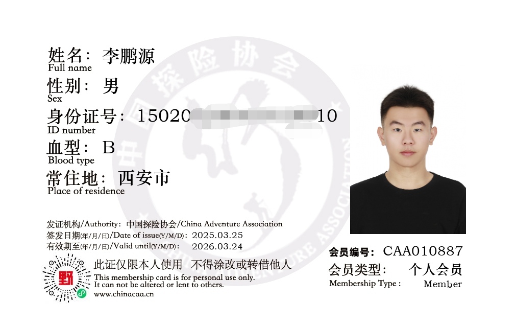 李鹏源在学习与实践的同时也要求自己努力做到德、智、体、美、劳全面发展。在生活中热爱探索与运动,目前已成为中国探险协会星级成员,国家二级户外山地运动教练员,考取了国家一级、二级山地户外运动技能证书,他也希望在未来的学习中脚踏实地,步步前行,像户外徒步一样总有美好的风景值得期待,总有更高的山峰等待着你去挑战!