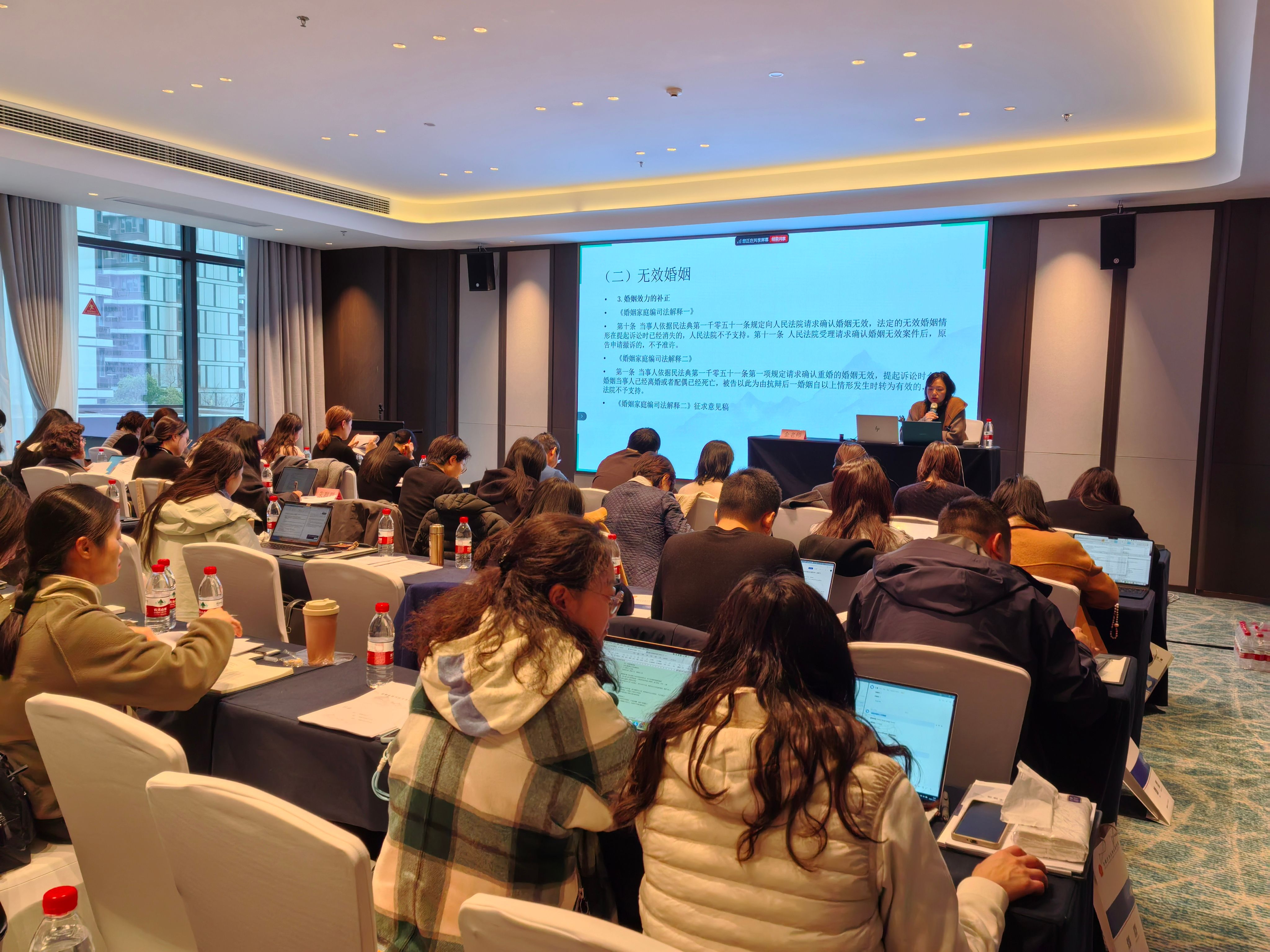本次培训班就《民法典婚姻家庭编的解释(二)》的制定背景、主要内容及适用难点展开深入解读。培训的三位主讲专家老师详细讲解了司法解释的立法意图、条文释义以及在实际案件中的具体应用,同时结合典型案例进行了深入剖析。专家们提到婚姻家事类案件是民事领域最主要的案件类型之一,其争议类型多样复杂,涉及婚姻关系、债权债务、财产分割、子女抚养、继承等诸多方面,同时也出现了一些亟待解决的新情况、新问题。