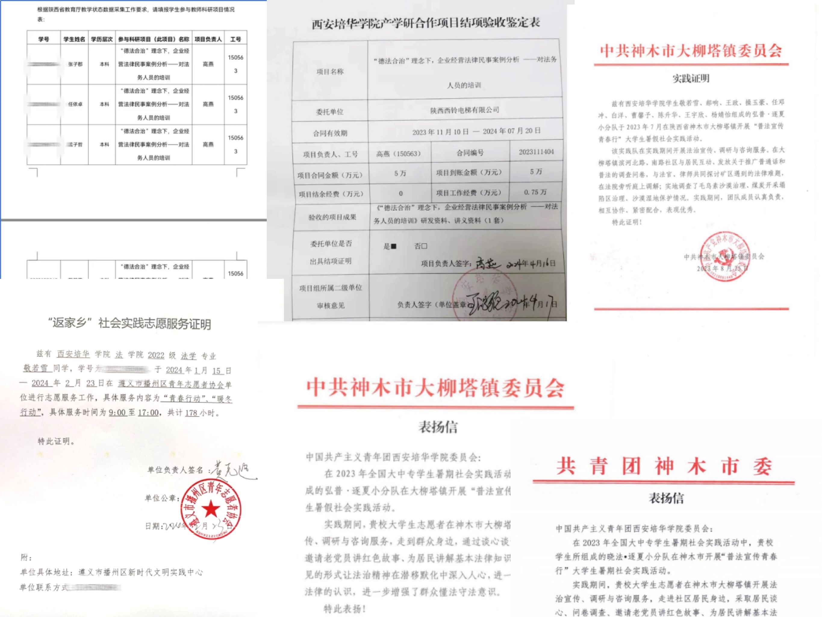 她始终将个人成长与国家需求紧密结合。2025年1月,她在西安培华学院第二届全国大学生职业规划大赛中,以《基层法治工作者的乡村振兴之路》为主题,提出“法治+产业”赋能乡村方案,获评“优秀选手”。她创新推动校地合作,在“返家乡”社会实践中,获“优秀实习生”称号。