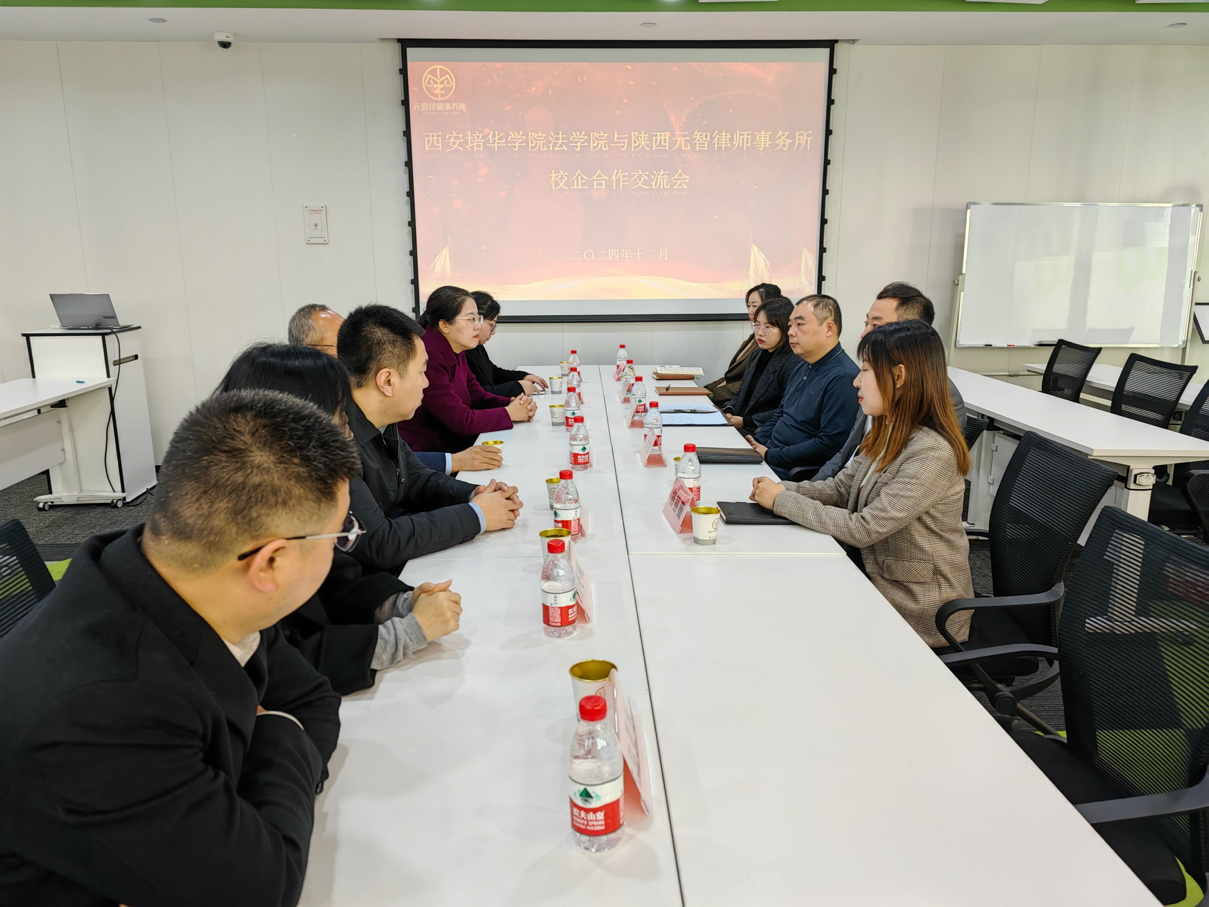 2024年12月13日上午,西安培华学院法学院院长王鸿貌率领一行人员,莅临陕西元智律师事务所,进行了一场旨在拓展岗位与深化校企合作的座谈交流。