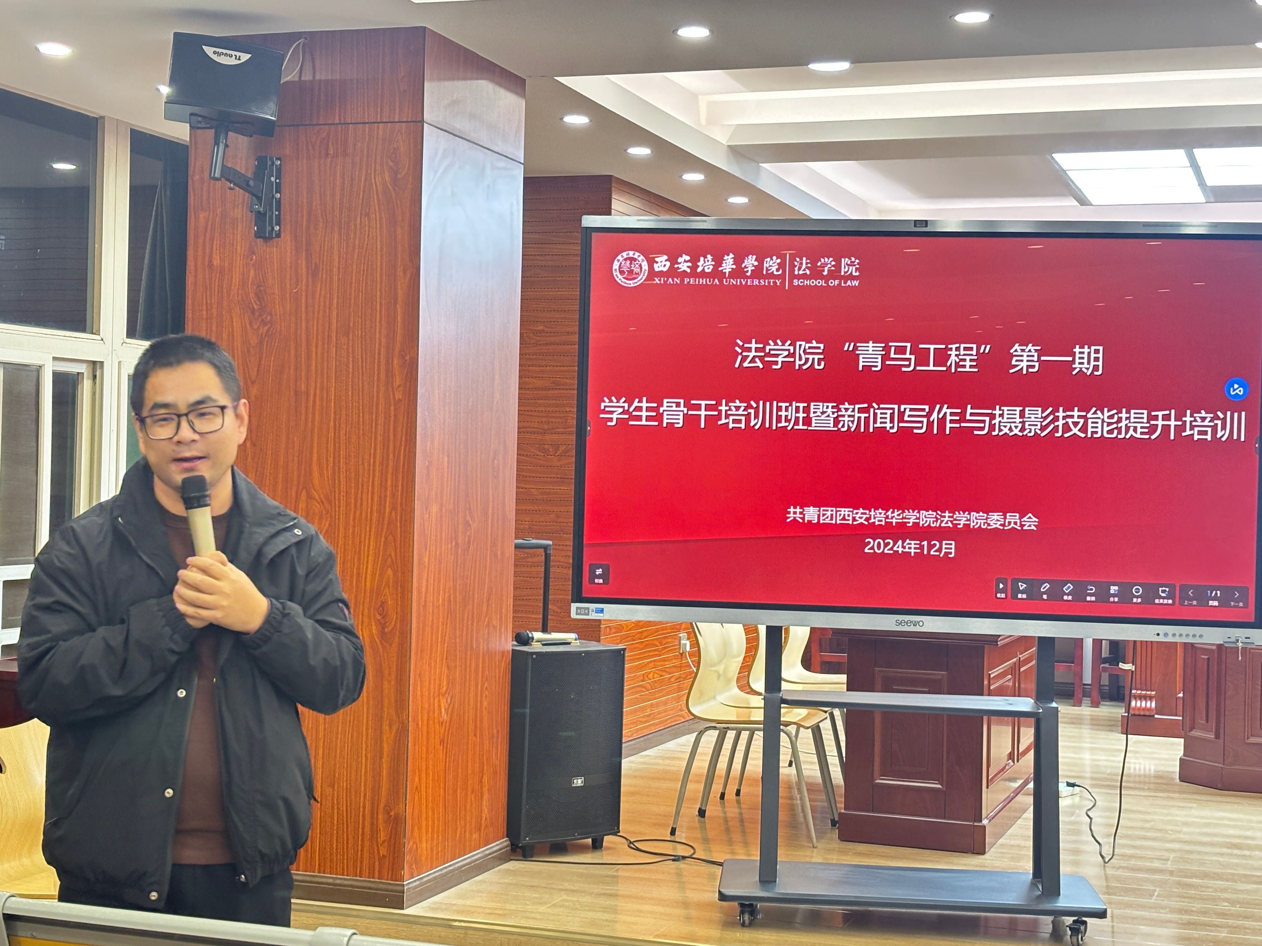 为了促进各班宣传委员的新闻稿写作与摄影技术能力的提升,我院特邀新媒体中心吕晓东老师开展法学院“青马工程”第一期学生骨干培训班暨新闻写作与摄影技能提升培训,于12月2日在1609B模拟法庭进行,法学院各班宣传委员参加培训。