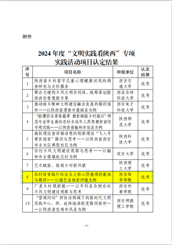 会上,通报了我院明法·夏日实践队的实践项目《农村培育践行社会主义核心价值观的载体与路径——以镇巴县杨家河镇为例》获评2024年“文明实践看陕西”专项实践活动“优秀”结项。