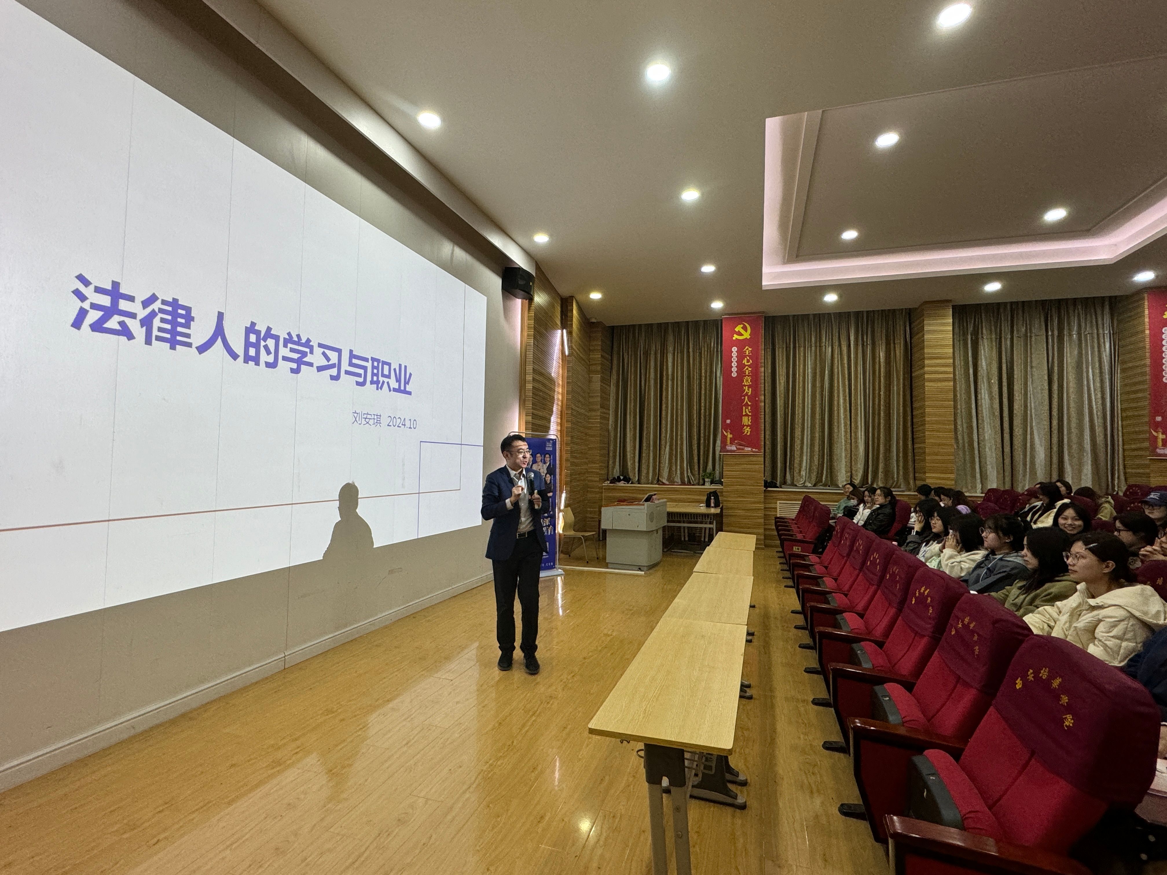 为帮助同学们增强就业能力、获取就业机会,提升自我认知水平与职业探索能力。2024年10月21日19:00—21:00在格物楼报告厅为2023级学生开展职业规划讲座活动。本次讲座特邀刘安琪老师,毕业于对外经贸大学,国家法律职业资格考试商经法讲师,法学硕士学位,瑞达教育独家讲师,研究领域为商经法方向,为2023级本科法学生开展大学生职业规划与就业指导(二)第一讲专题讲座,法学院法律实务教研室主任马亚乐担任主持人。
